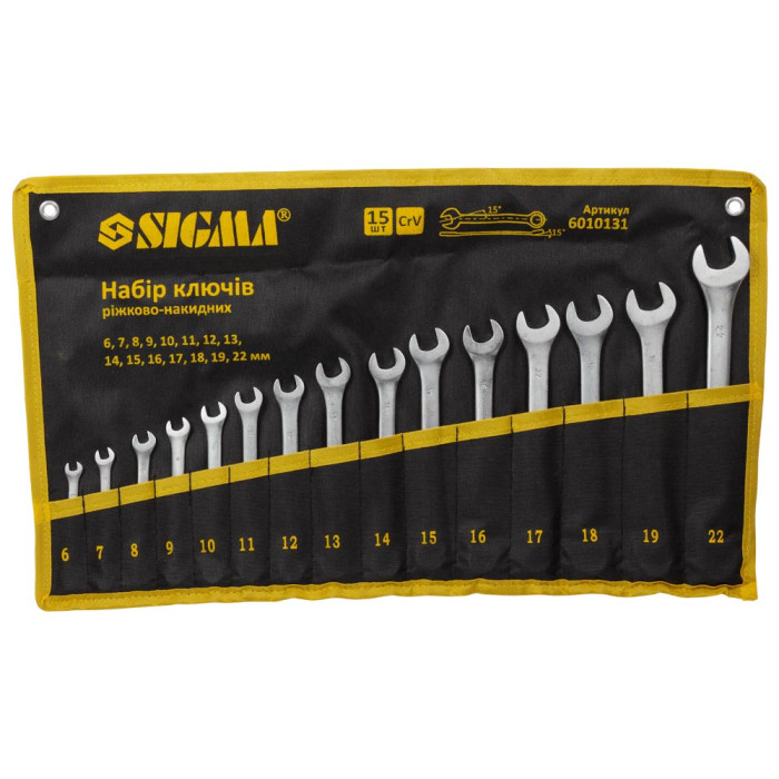 Ключи рожково-накидные 15шт 6-22мм CrV satine (тк чехол) SIGMA (6010131)