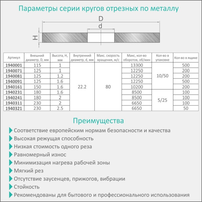 - Высокая режущая способность и низкая стоимость одного реза - отличное соотношение цены, качества, стойкости, производительности и надежности;
