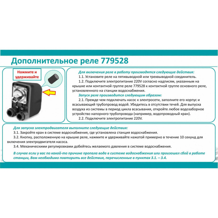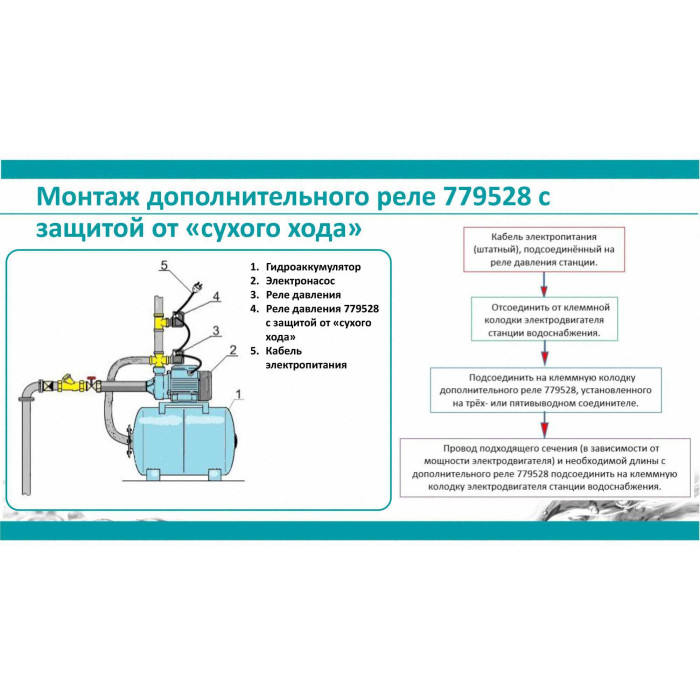 - Реле давления может работать только совместно с гидроаккумулятором.