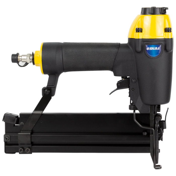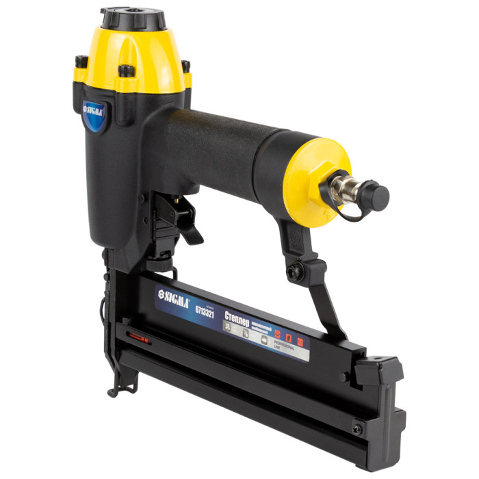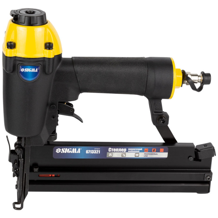 Степлер пневматический комбинированный "Plus" 0.04л/удар 5-7бар скоба 5.8мм (16-40мм) 1.25×1мм гвоздь (10-50мм) 1.25×1мм SIGMA (6713321) предназначен для быстрого скрепления материалов с помощью гвоздей и скоб. Используется при выполнении строительных, монтажных, обивочных и столярных работ для крепления листовых материалов к различным поверхностям (деревья, гипсокартона, фанеры, ДВП, кожи, ткани и т.п.).
