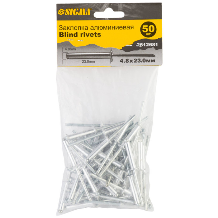Заклепки алюминиевые Standard 4,8*23мм 50шт Sigma (2612681) используется для неразборного скрепления различных материалов с помощью механических или пневматических заклепочников.